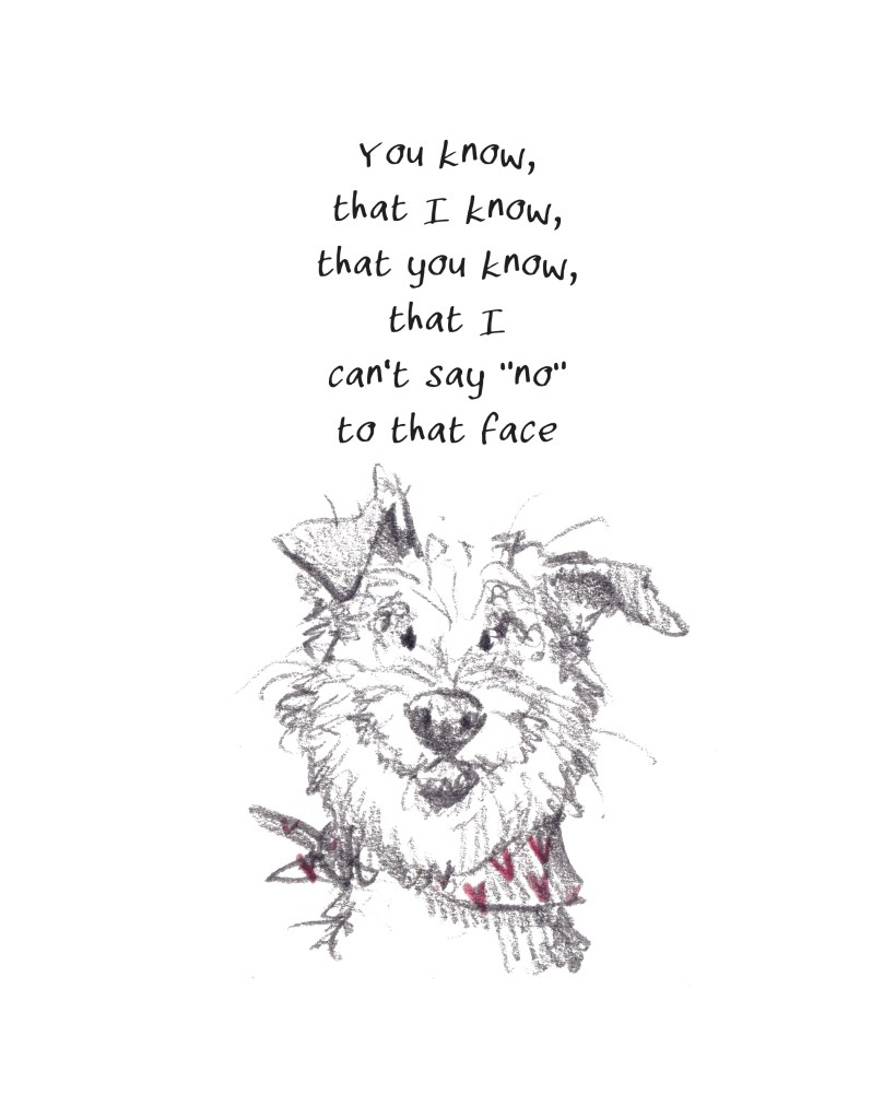 Whilst out and about with, or napping with, or feeding, or giving treats to, or reading with my dogs an idea for a drawing comes to me.